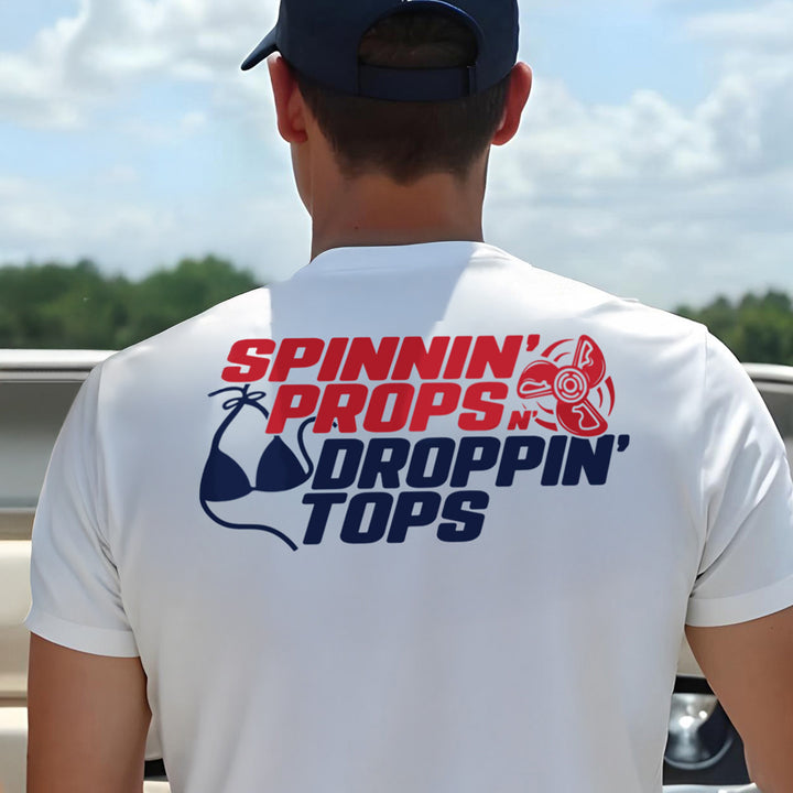 One of the best boating tshirts, Spinnin' Props and Droppin' Tops Boating Shirt is perfect for boat owners that live for the water. The Spinning Props and Dropping Tops shirt is both comfortable and durable providing a stylish performance on the river, lake or bay. Whether you're at the work dreaming of the weekend or out on the waves, this t-shirt keeps you looking sharp and feeling fresh. The Spinning Props Shirt is Now Available.